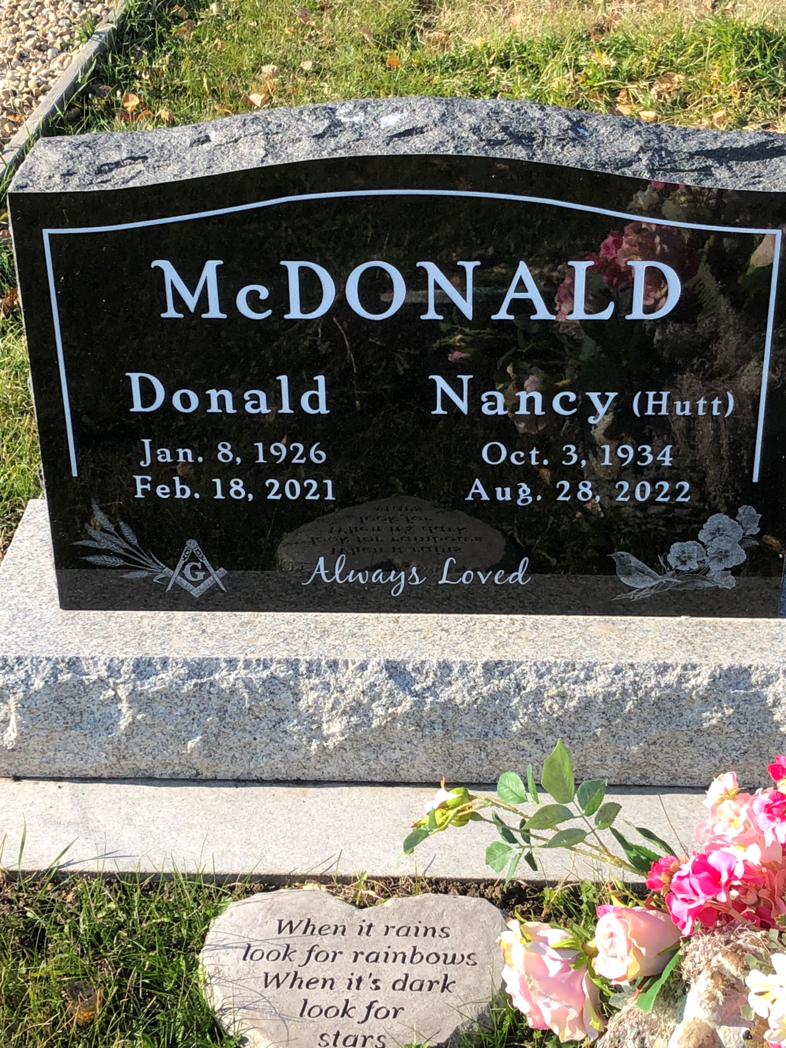 McDonald, Nancy Elizabeth: October 3, 1934 - August 28, 2022 {also on McDonald grave stone page}