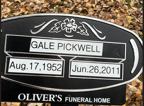 | Gale John Patrick Pickwell: AUGUST 17, 1952 – JUNE 26, 2011 IN THE CARE OF Rose Garden Chapel Arrangements under the direction of Rose Garden Chapel, Barrhead, AB. CLIPPED FROM: Gale John Patrick Pickwell Obituary - Barrhead, AB (dignitymemorial.com) |